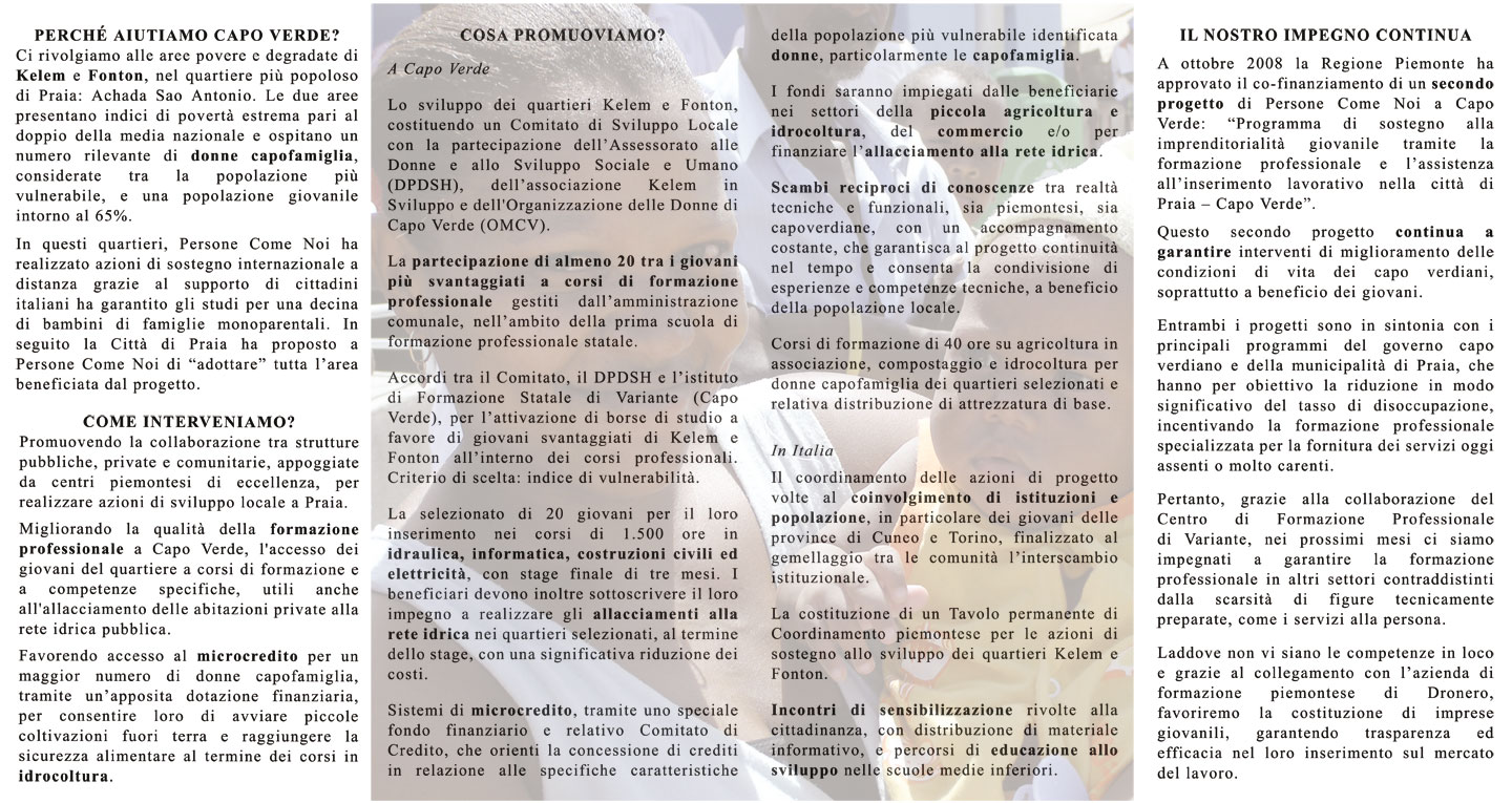 | Municipalità di Praia Centro di Formazione Permanente di Variante Organizzazione delle Donne di Capo Verde Associazione Kelem in Sviluppo |